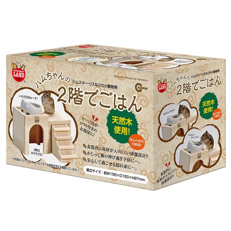 ●別売「マルカン ハムちゃんのフード付食器 ES-17」が2階にぴったり入ります。