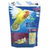 ●フルーツフレーバー(リンゴ、ブルーベリー、ラズベリー)と多色ペレットはシード食からペレット食への切り替えに最適な総合栄養食。