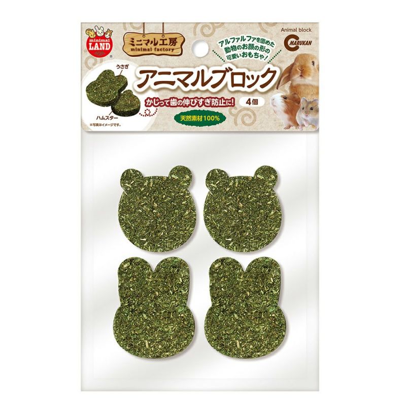 ●アルファルファをうさぎとハムスターの形に固めたおもちゃで、かじって遊ぶことができます。