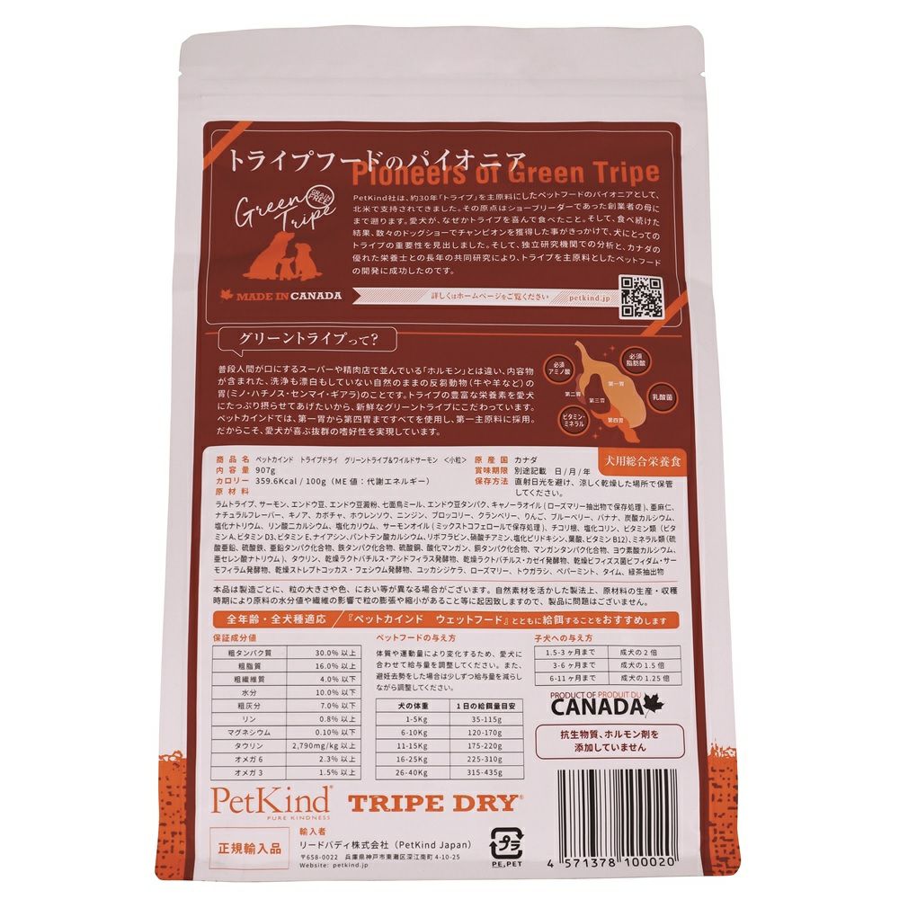 PetKind グリーントライプ&ワイルドサーモン 小粒 907g