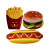 ■特長 ●ファストフードの代表格、ハンバーガー・ポテトフライ・ホットドッグをかわいいワンちゃんサイズに仕上げました。 ●スクィーカーを鳴らしやすいやわらかラテックストーイです。 ●ハンバーガー・ポテトフライ・ホットドッグの3点セット。