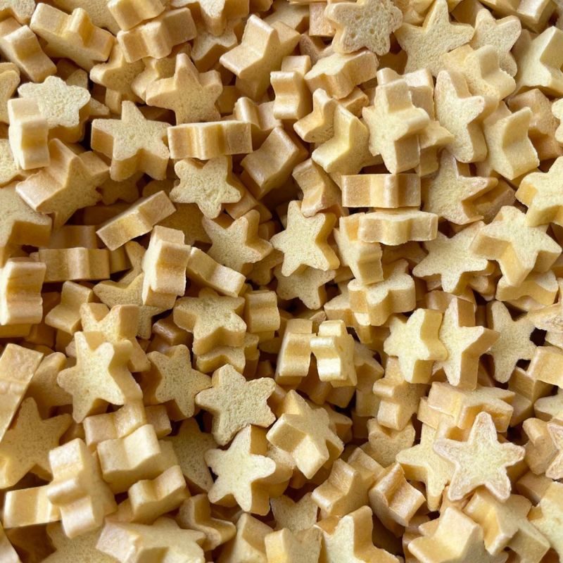■特長 星型の可愛いお麩のおやつです。 シニア犬にも与えやすい軽い口当たりのおやつでダイエット中のワンちゃんにもおススメ! フードや手作りごはんに混ぜてもOKです。