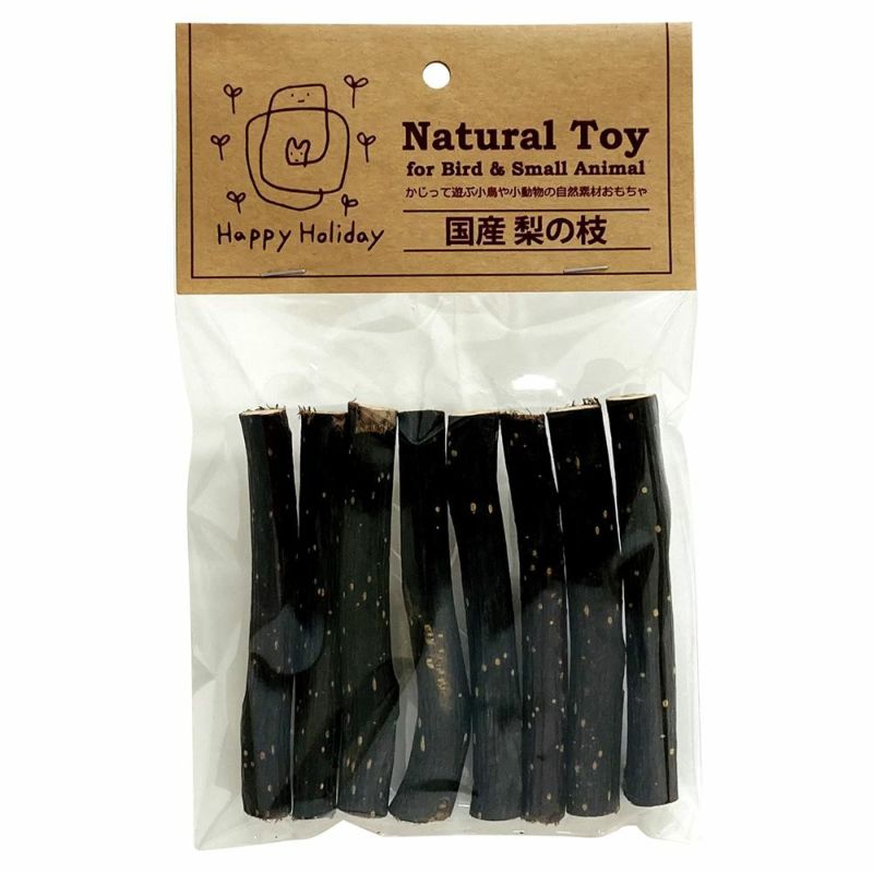 国産梨の枝を乾燥させたおもちゃです。梨は、甘く冷涼感のある糖アルコールでソルビトール、消化促進・タンパク質を分解する酵素プロテアーゼなど特別な栄養素が豊富です。動物にとっても美味しいだけでじゃない果物です。